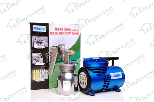 适用领域: 1、可喷涂光触媒及各种油漆、乳胶漆、药剂、水剂等 产品特点: 1、无油环保型设计,无污染; 2、小巧美观,一机多用,集喷涂、充气、空气消毒、花卉杀虫喷雾于一体,结构紧凑合理,特别适用于流动作业; 3、喷涂:雾化充分、精细均匀,涂料利用率在70%以上(普通喷涂机仅为30%); 4、充气:快速方便,轿车轮胎仅3分钟能到标准气压;多用充气接头可直接与轿车、摩托车、自行车及各种球类相连接使用; 5、安全可靠:压力超过4.0BAR时会自动卸压,绝无爆炸可能,每台电机经1800V耐压测试,绝无漏危险。 6、品质保证:本产品按德国GS 标准严格把关生产、产品已通过GS、CE 国际认证。 技术参数: 空压机:MFJ-PT2 功率:60W 压力:3.5BAR 流量:68L/MIN 喷枪:HS-F75 容量:750CC 最大工作压力:50psi 喷嘴:0.5MM/1.3mm 扇形宽度:40MM 专用风管: 2.5M 电线长度: 1.9M 毛 重:4.5KG 执行标准: CE、GS